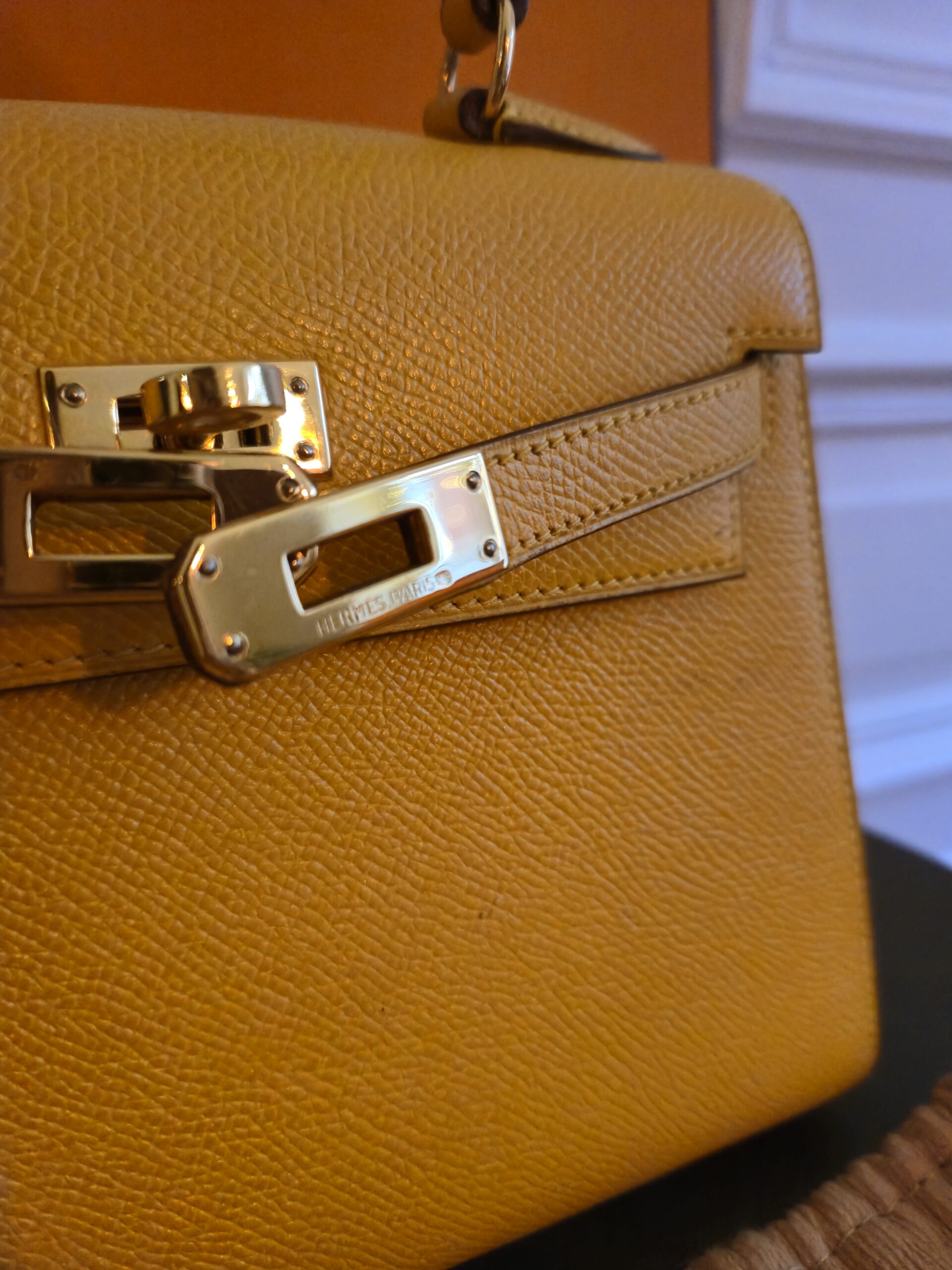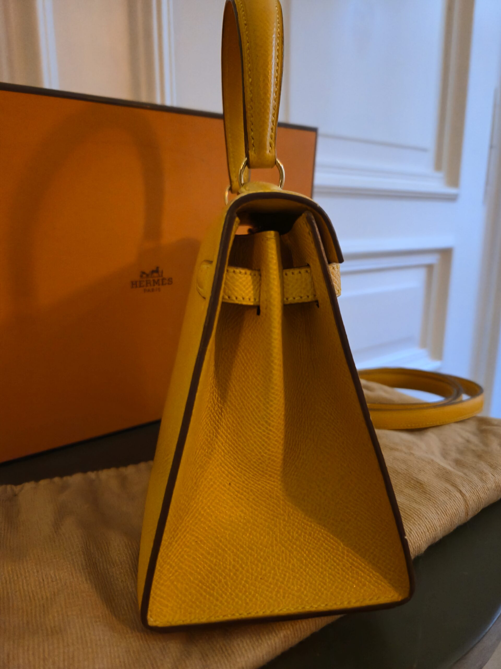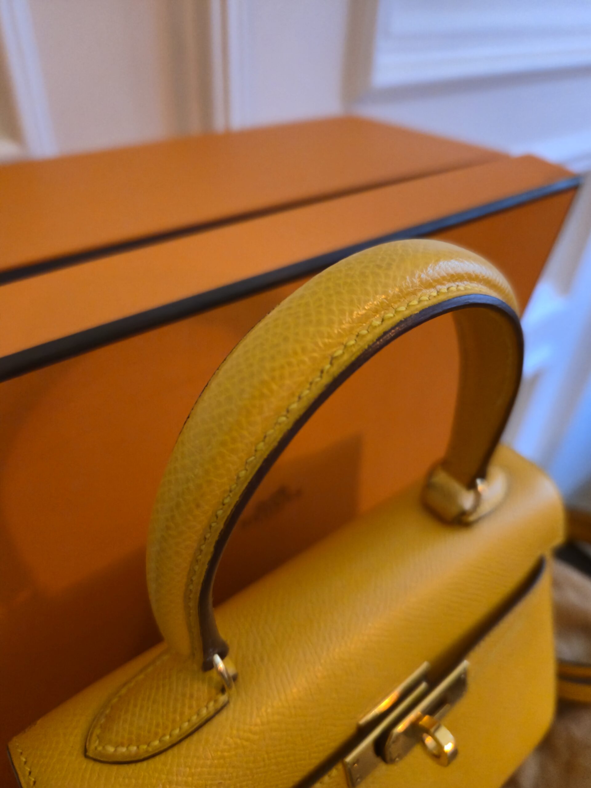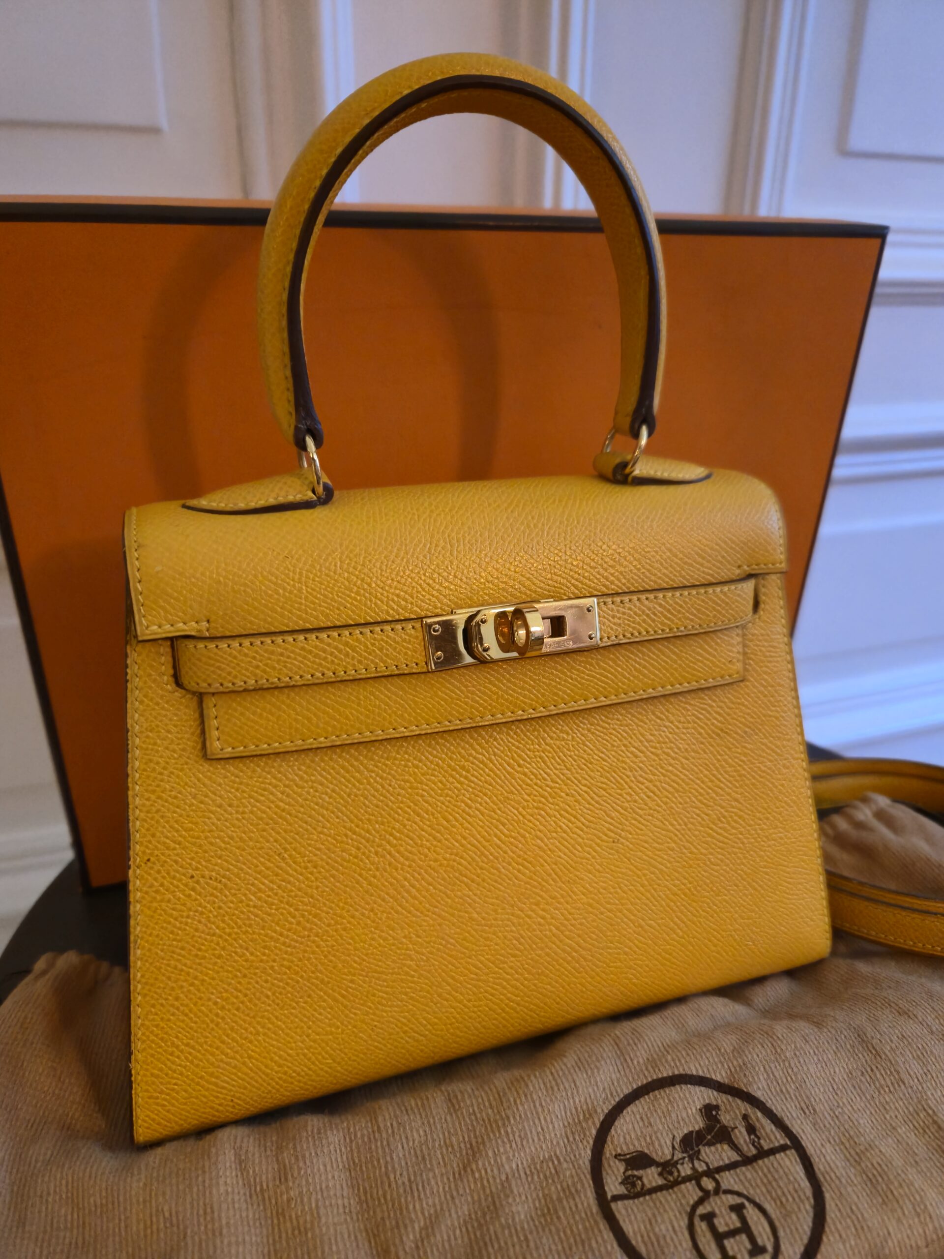 Verkauft wird hier eine atemberaubende Hermès Mini Kelly Vintage aus dem Jahre 1992 in gelb.