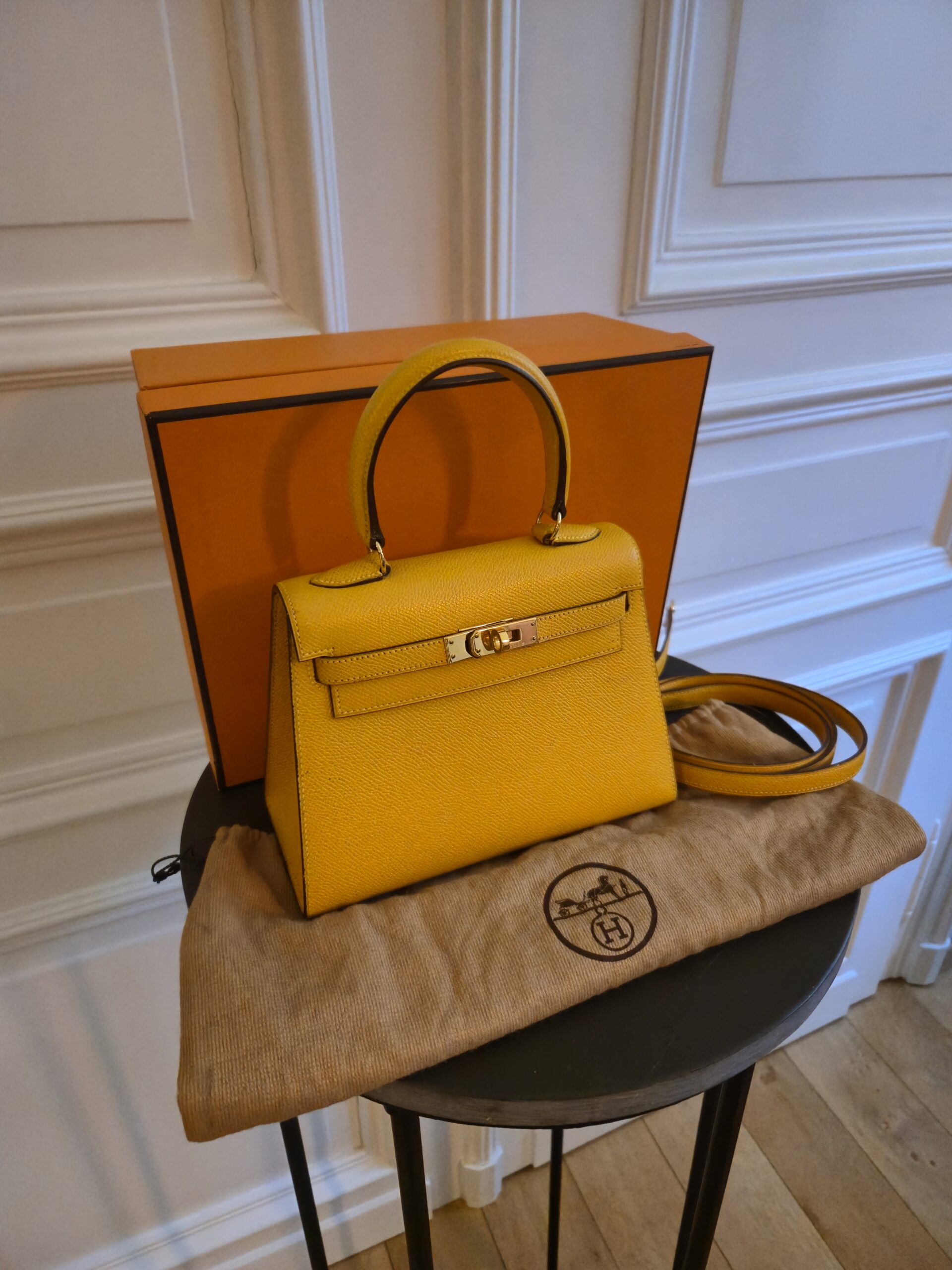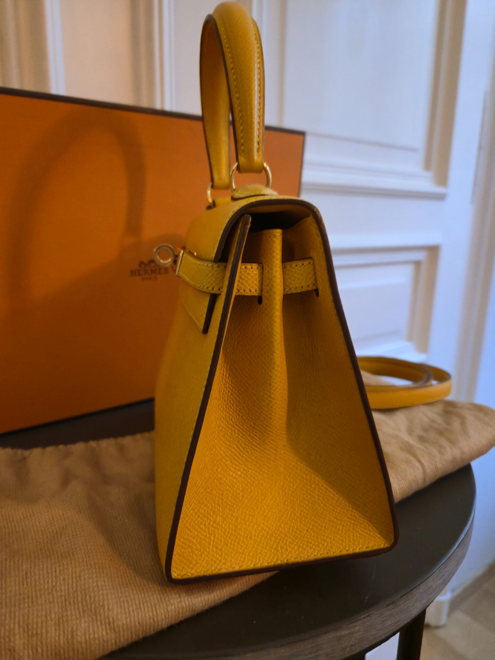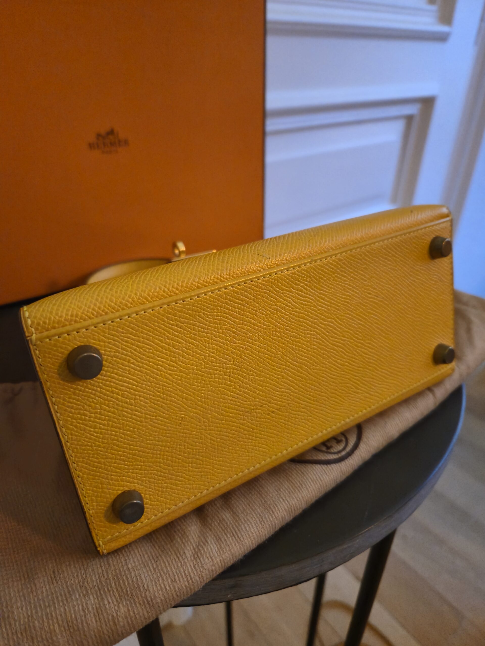 Verkauft wird hier eine atemberaubende Hermès Mini Kelly Vintage aus dem Jahre 1992 in gelb.