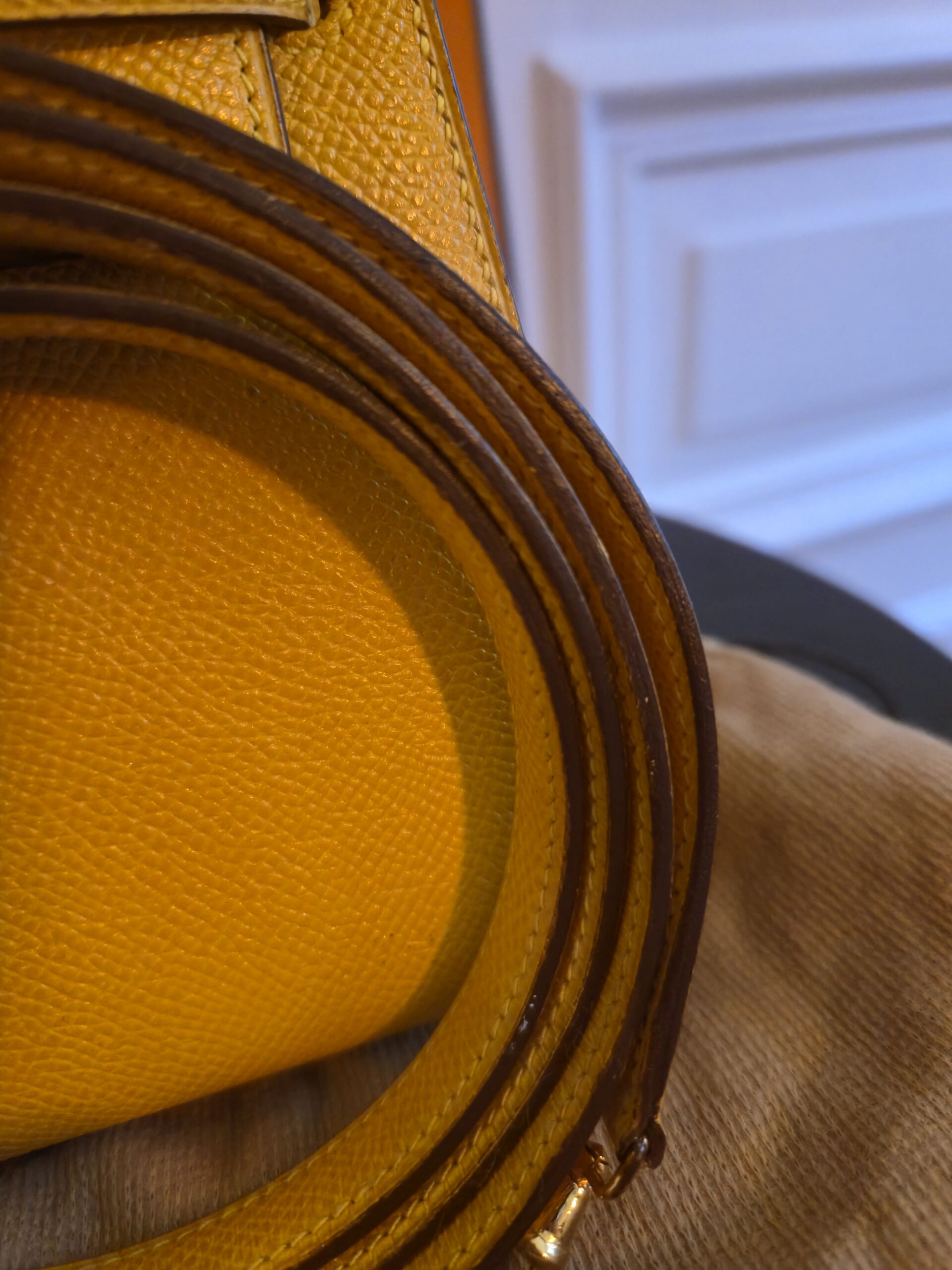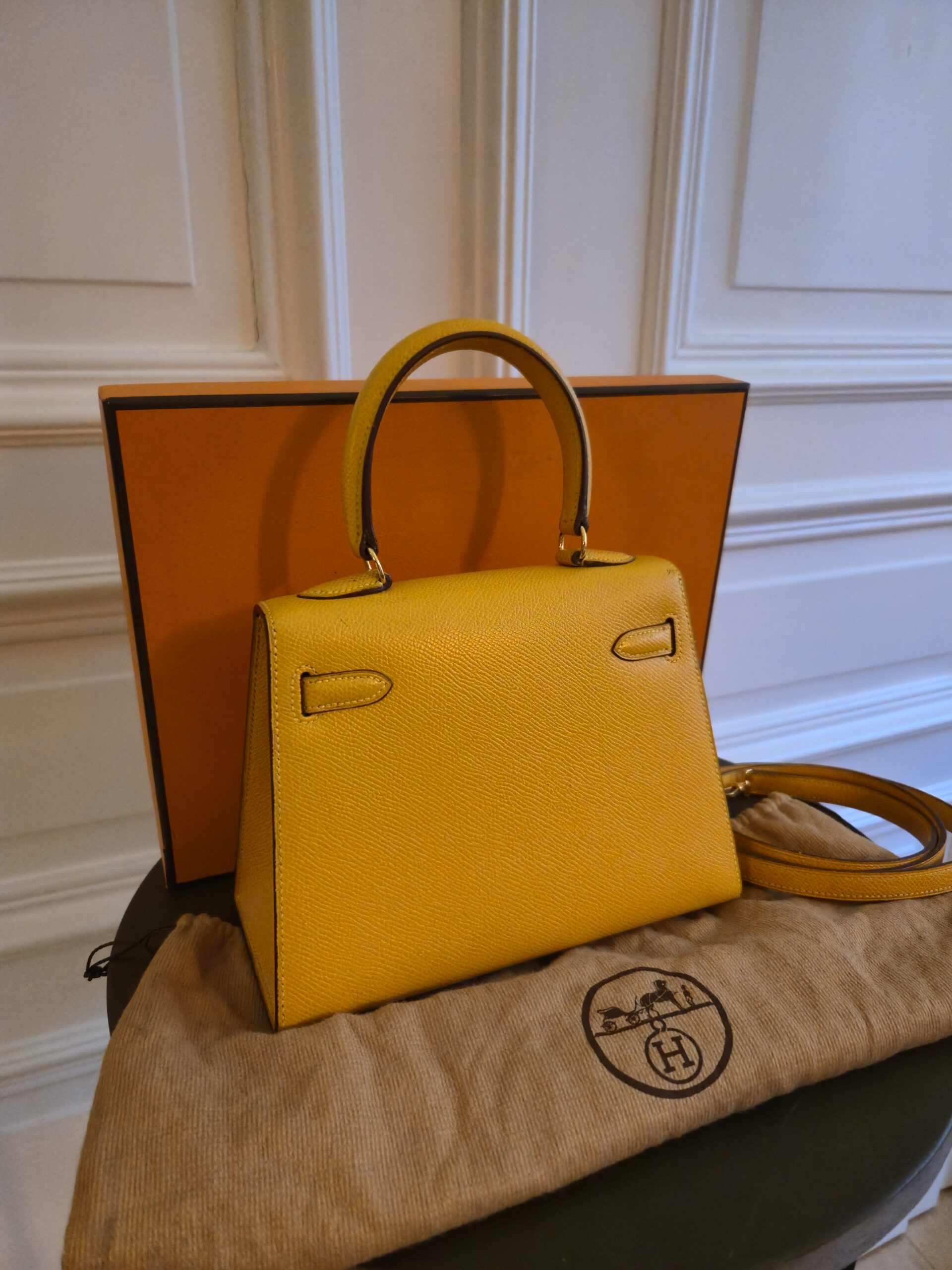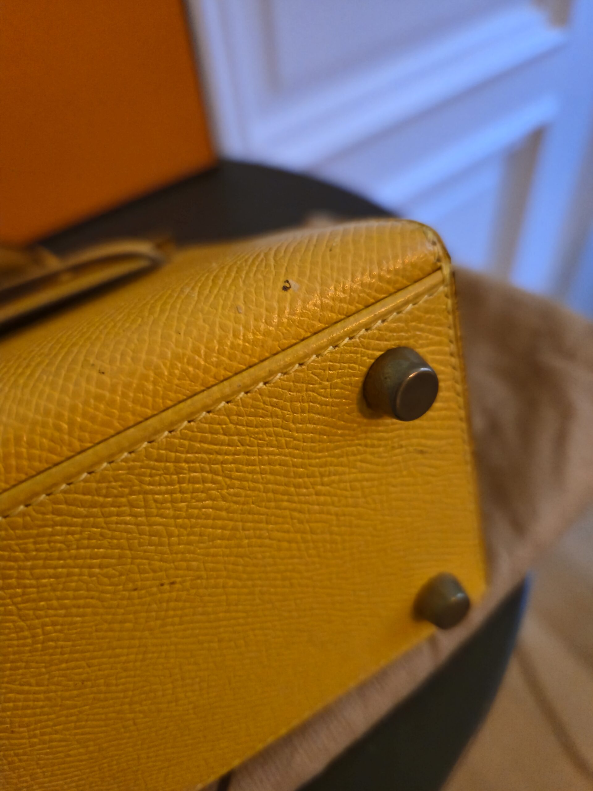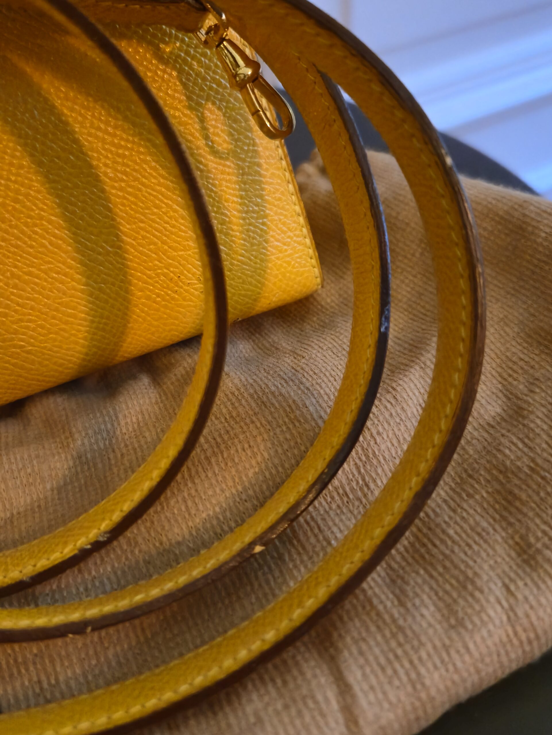 Verkauft wird hier eine atemberaubende Hermès Mini Kelly Vintage aus dem Jahre 1992 in gelb.