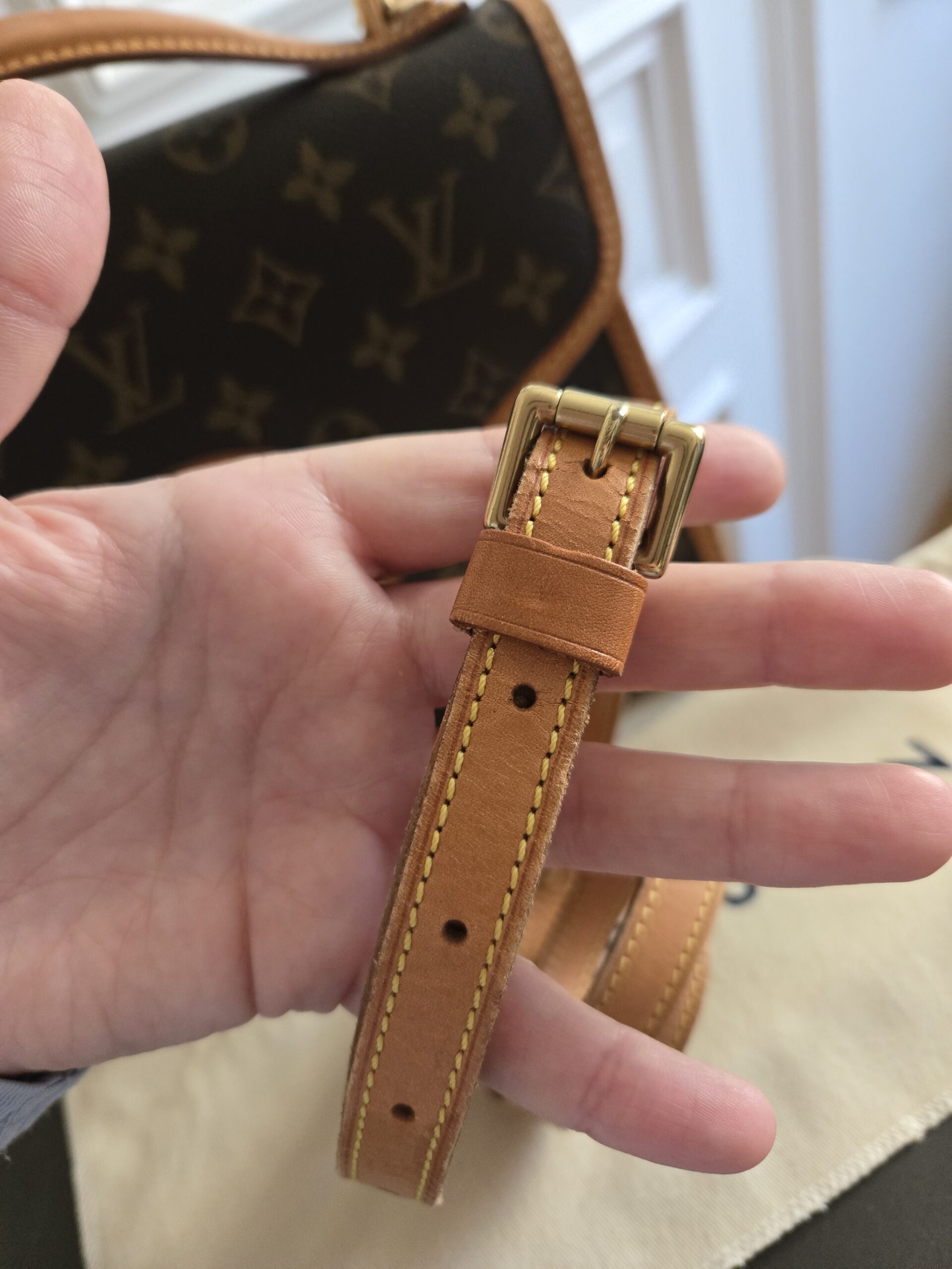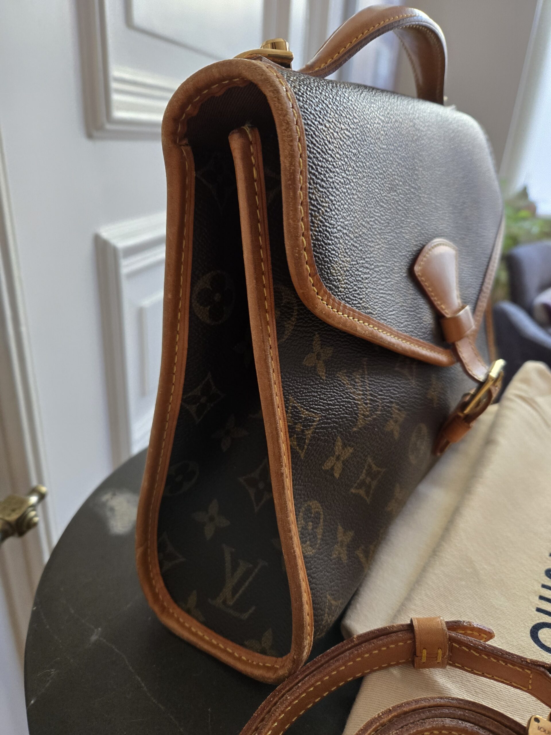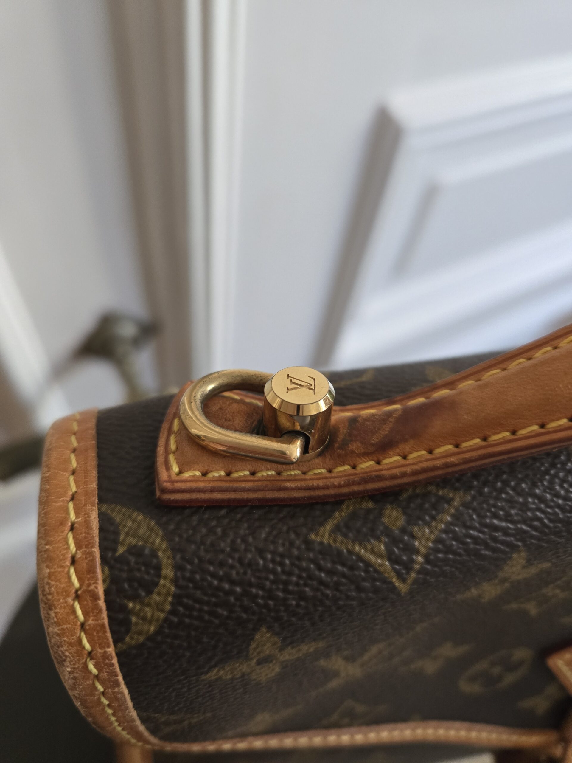 Die Tasche befindet sich in einem wunderschönen Vintage Zustand. Die Lederelemente sind alle sehr schön erhalten, das Leder an der Schnalle vorne weist nur geringe Gebrauchsspuren auf. Das Monogram Canvas ist ebenfalls super erhalten. Auch das Innere der Tasche ist absolut tadellos. Dieses Modell ist ein absolutes Highlight aus dem Hause Louis Vuitton und sehr begehrt.