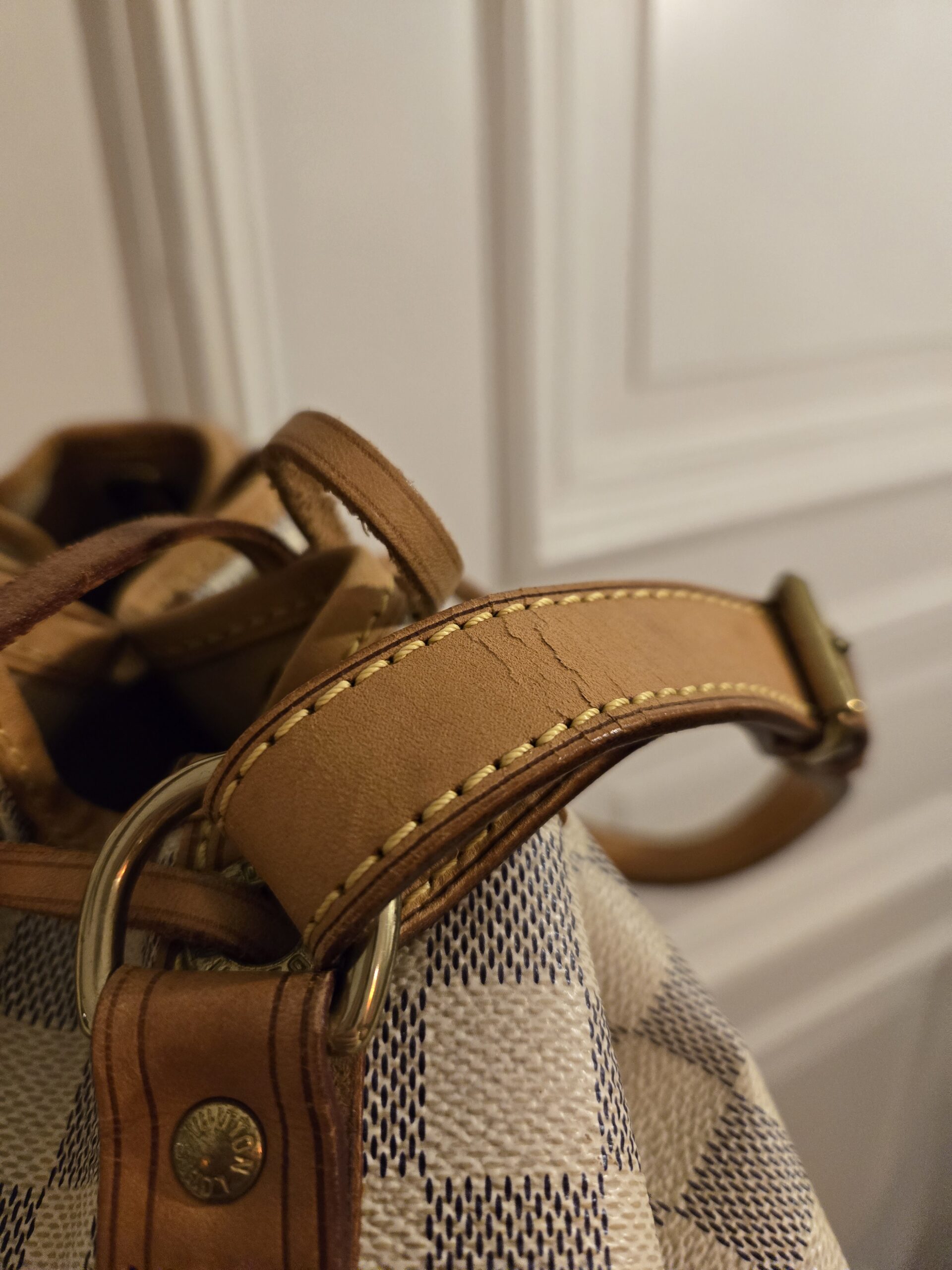 Die Tasche befindet sich in einem wunderschönen, nahezu neuwertigen Zustand. Die Lederelemente sind alle, bis auf ganz wenige, kleine Gebrauchsspuren super gut erhalten. Der obere Lederrand ist absolut tadellos. Das Damier Canvas ist super erhalten. Das Innere der Tasche ist in einem neuwertigen Zustand.