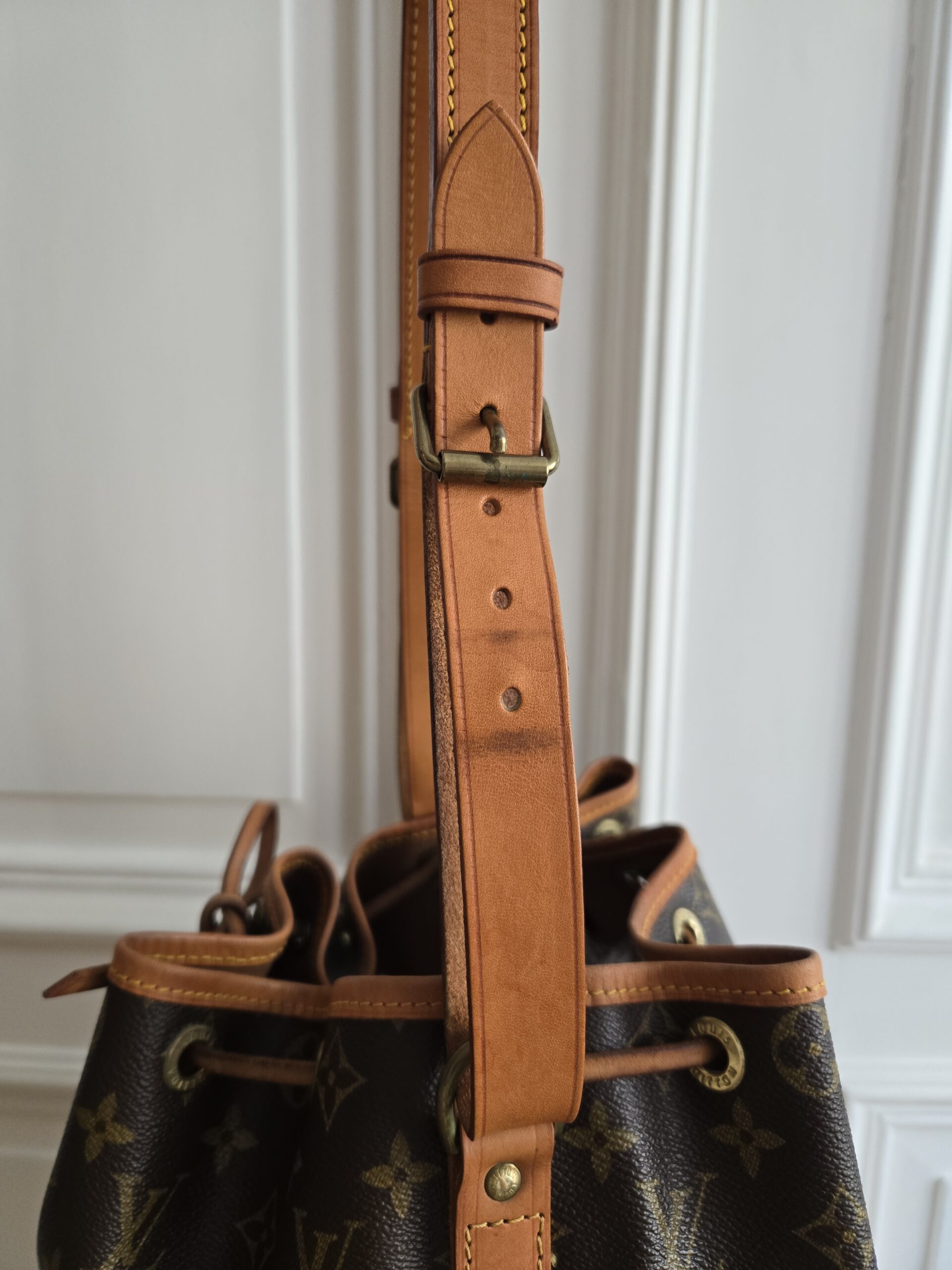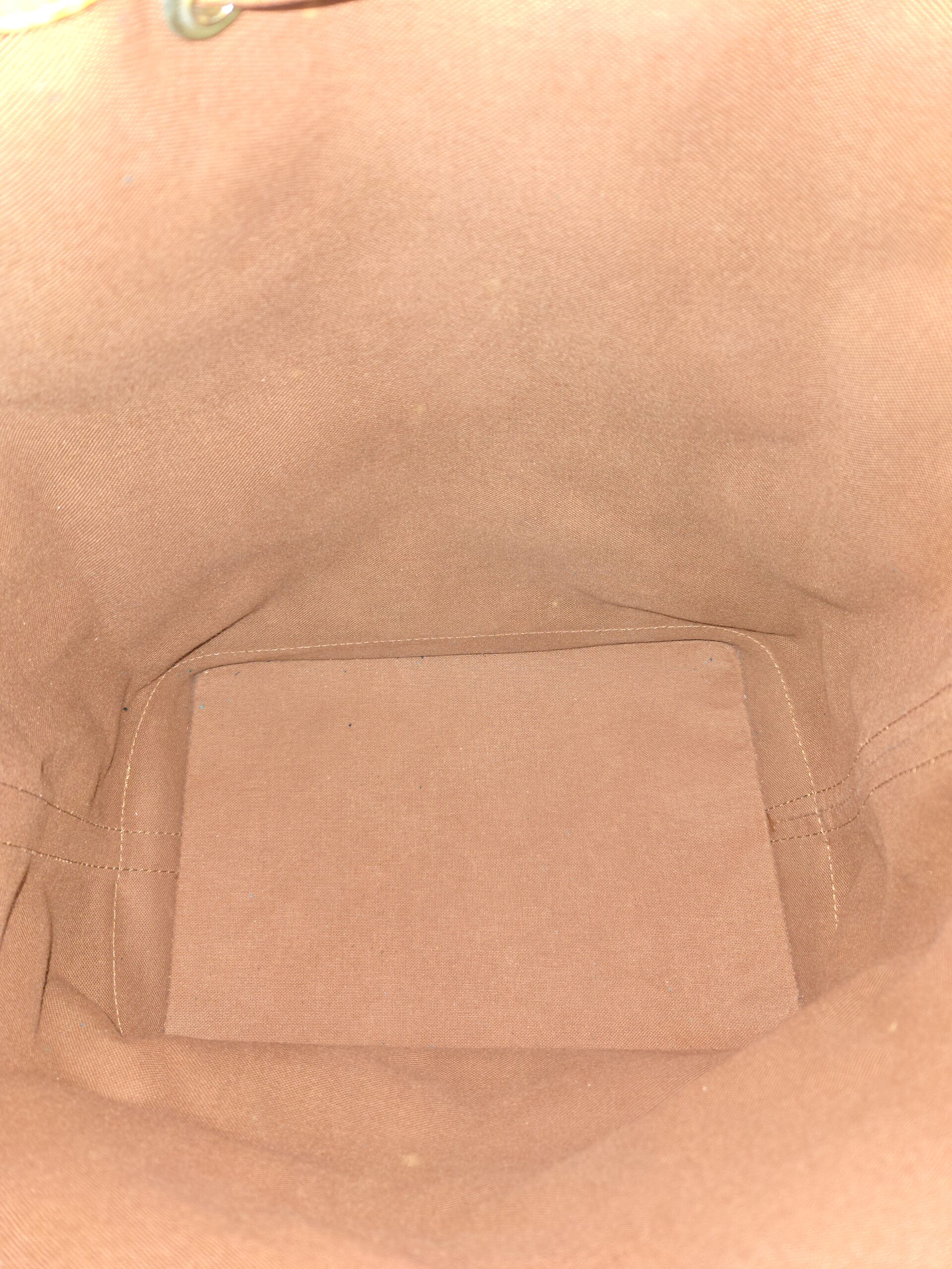 Die Tasche befindet sich in einem wunderschönen Vintage Zustand. Die Lederelemente sind alle sehr schön erhalten, der obere Lederrand ist absolut tadellos, das Zugband weist nur leichte Gebrauchsspuren auf. Das Monogram Canvas ist ebenfalls sehr gut erhalten. Alle Ecken sowie der Boden sind super erhalten. Auch das Innere der Tasche ist absolut super erhalten.