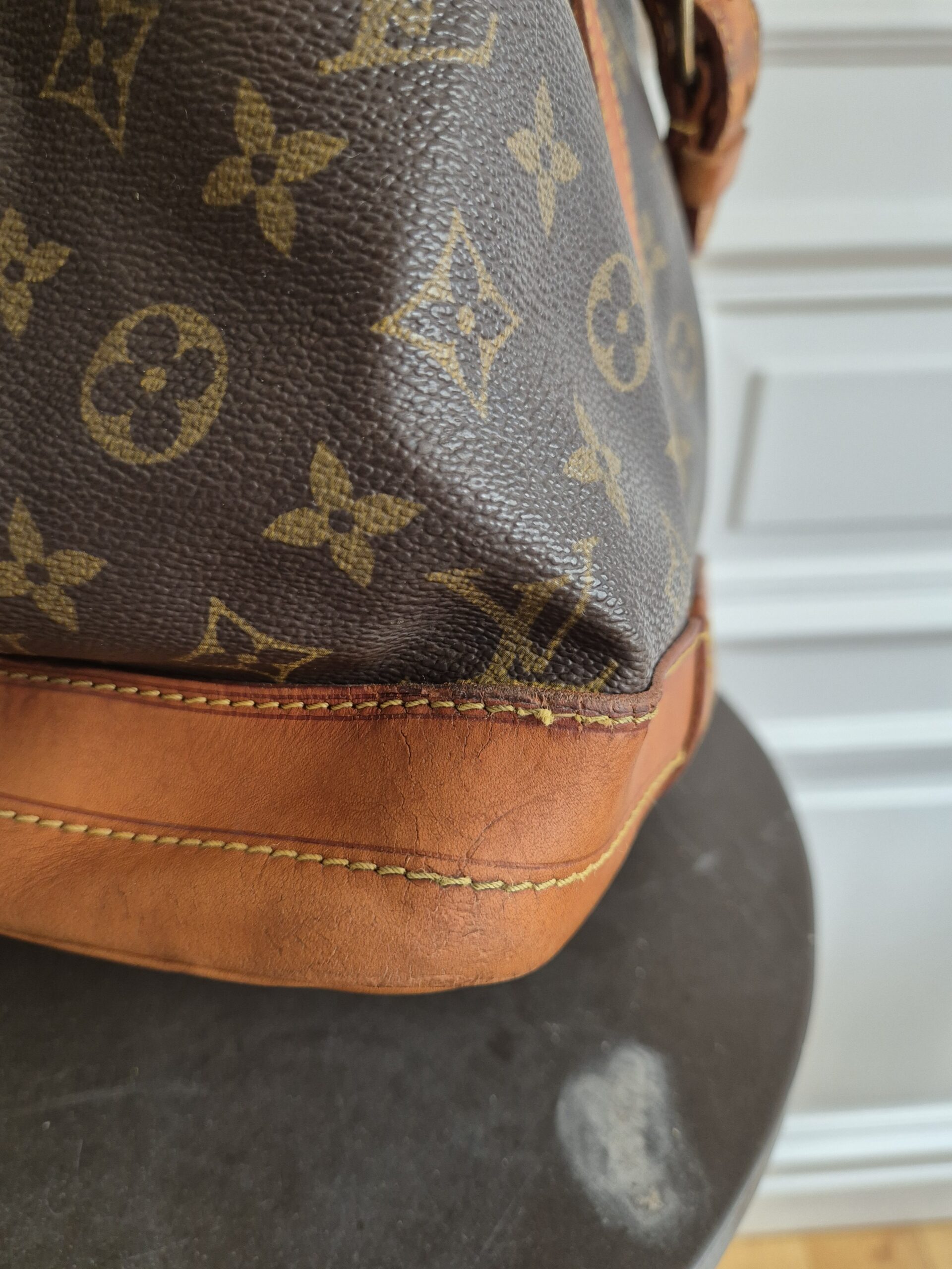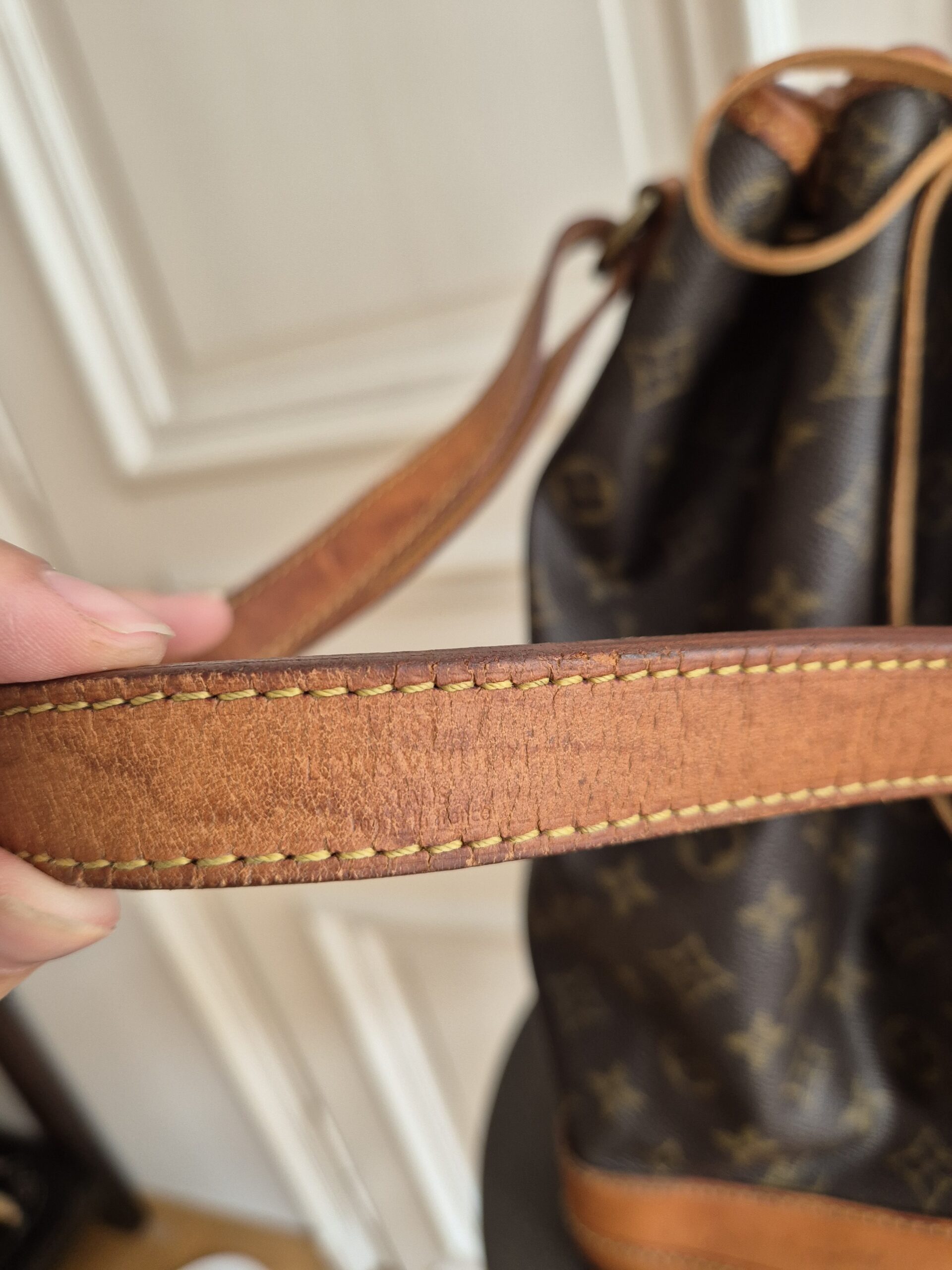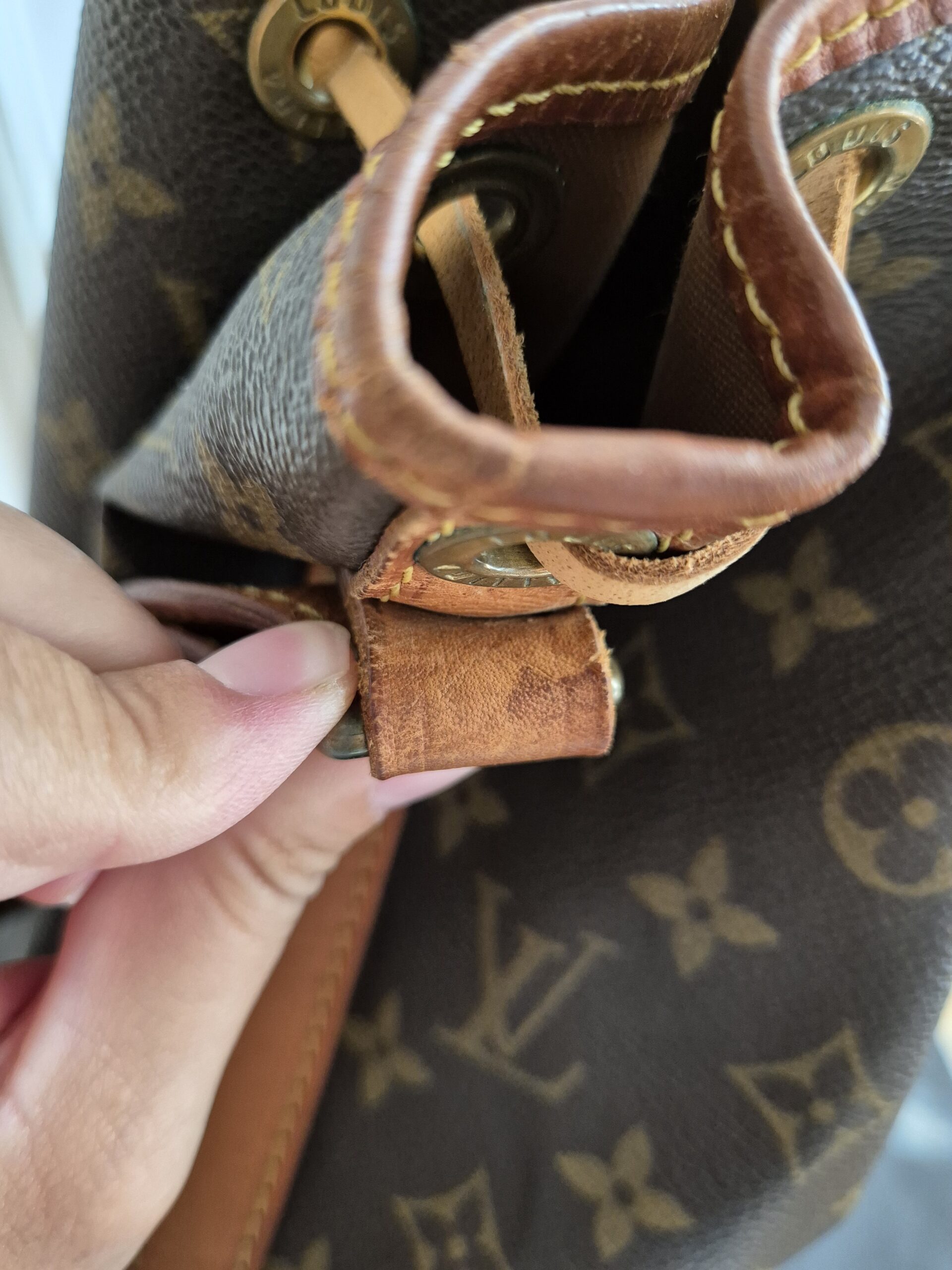 Die Tasche befindet sich in einem sehr schönen Vintage Zustand. Die Lederelemente sind alle gut erhalten, der obere Lederrand ist ebenfalls noch sehr schön, das Zugband haben wir durch einen neuen Vachetta Lederriemen ersetzt. Das Monogram Canvas ist ebenfalls sehr gut erhalten.