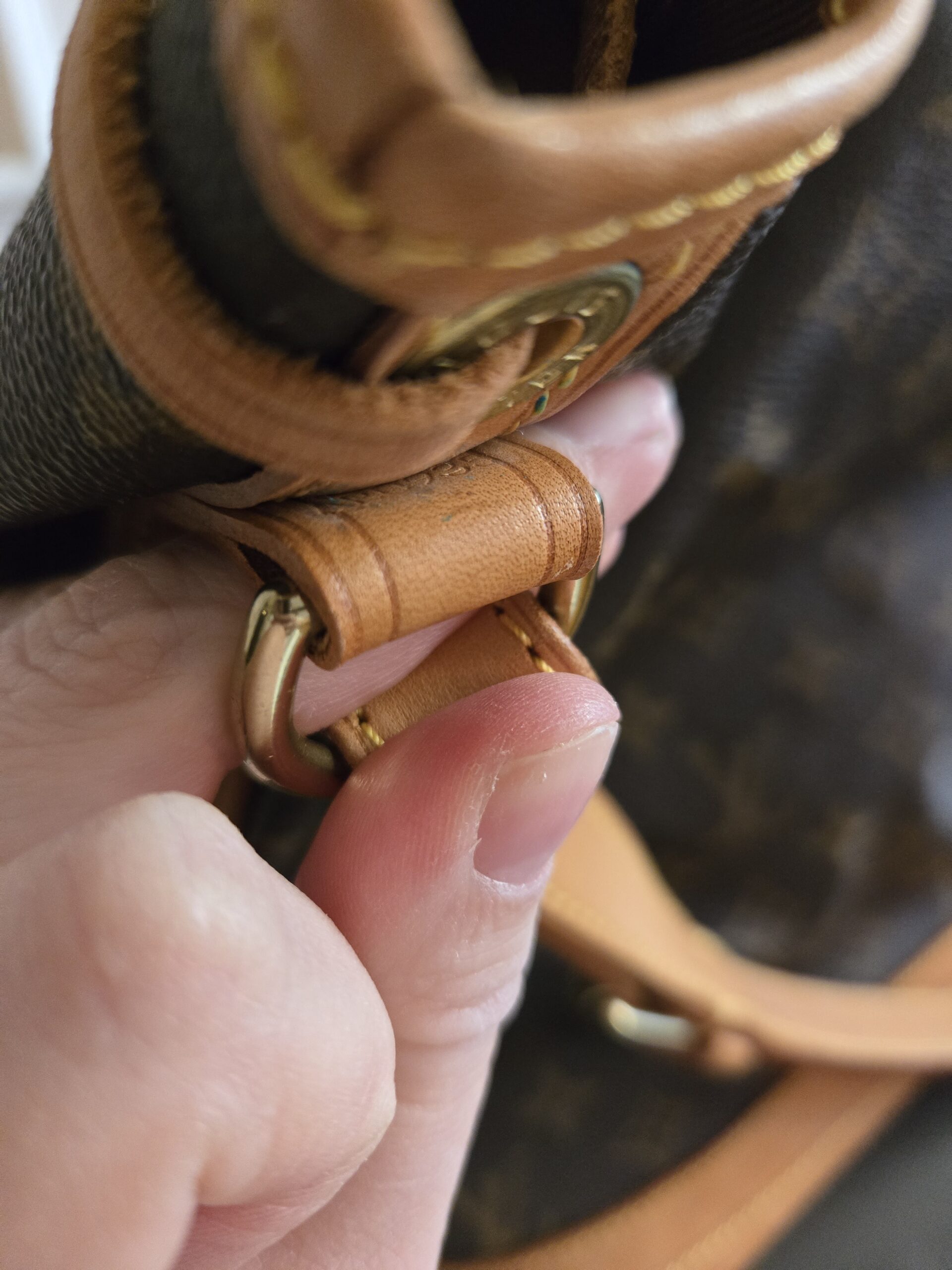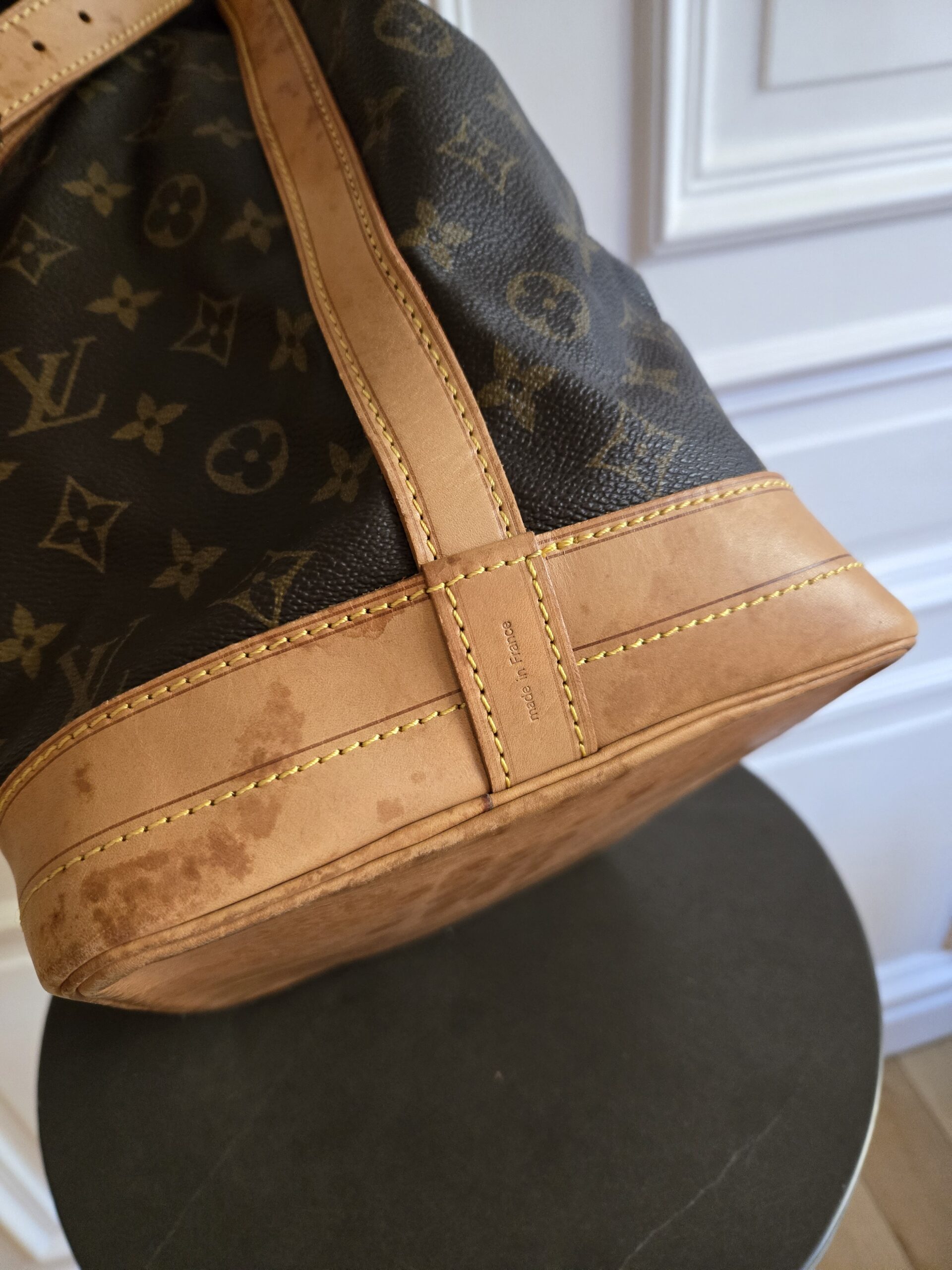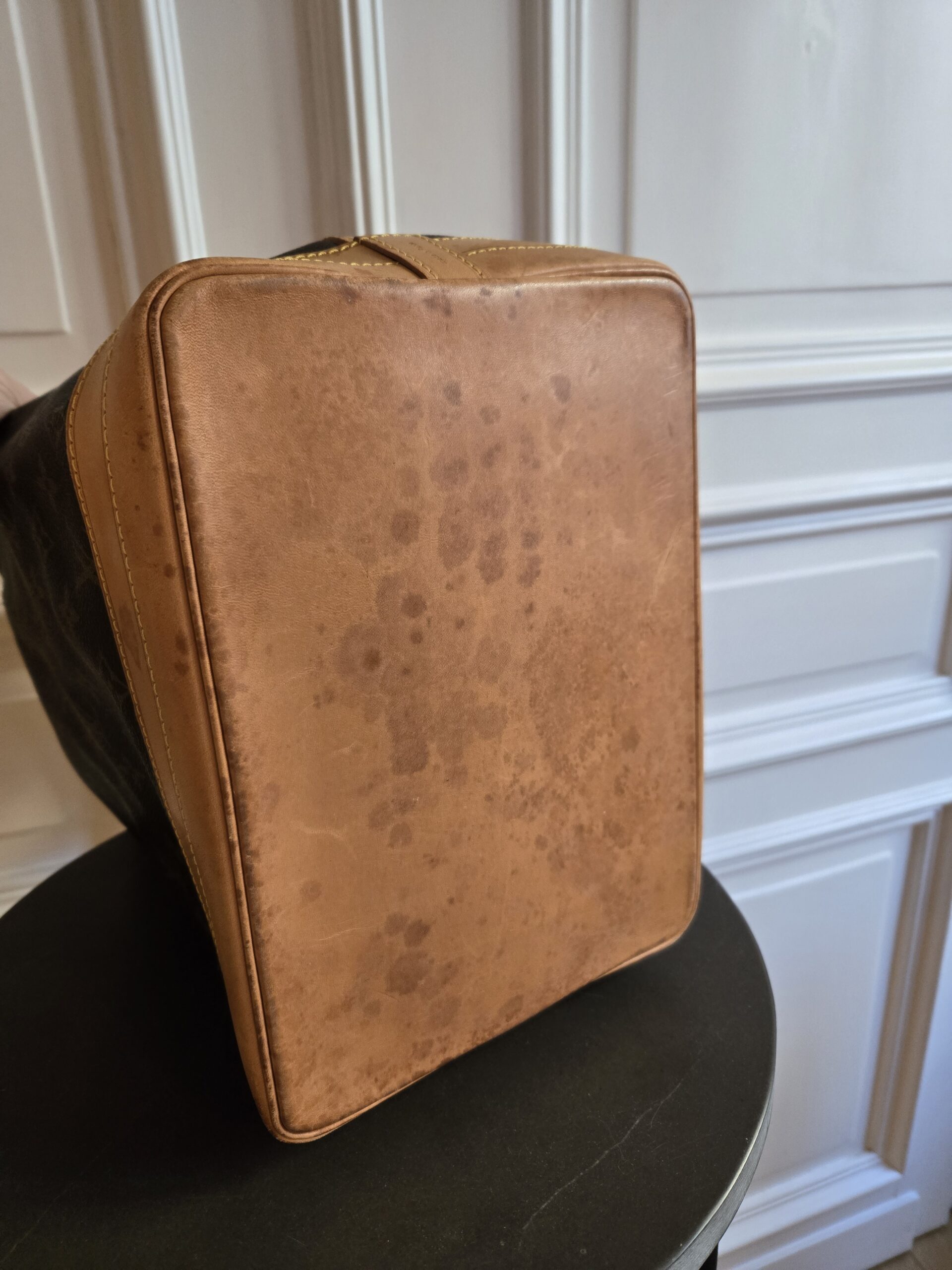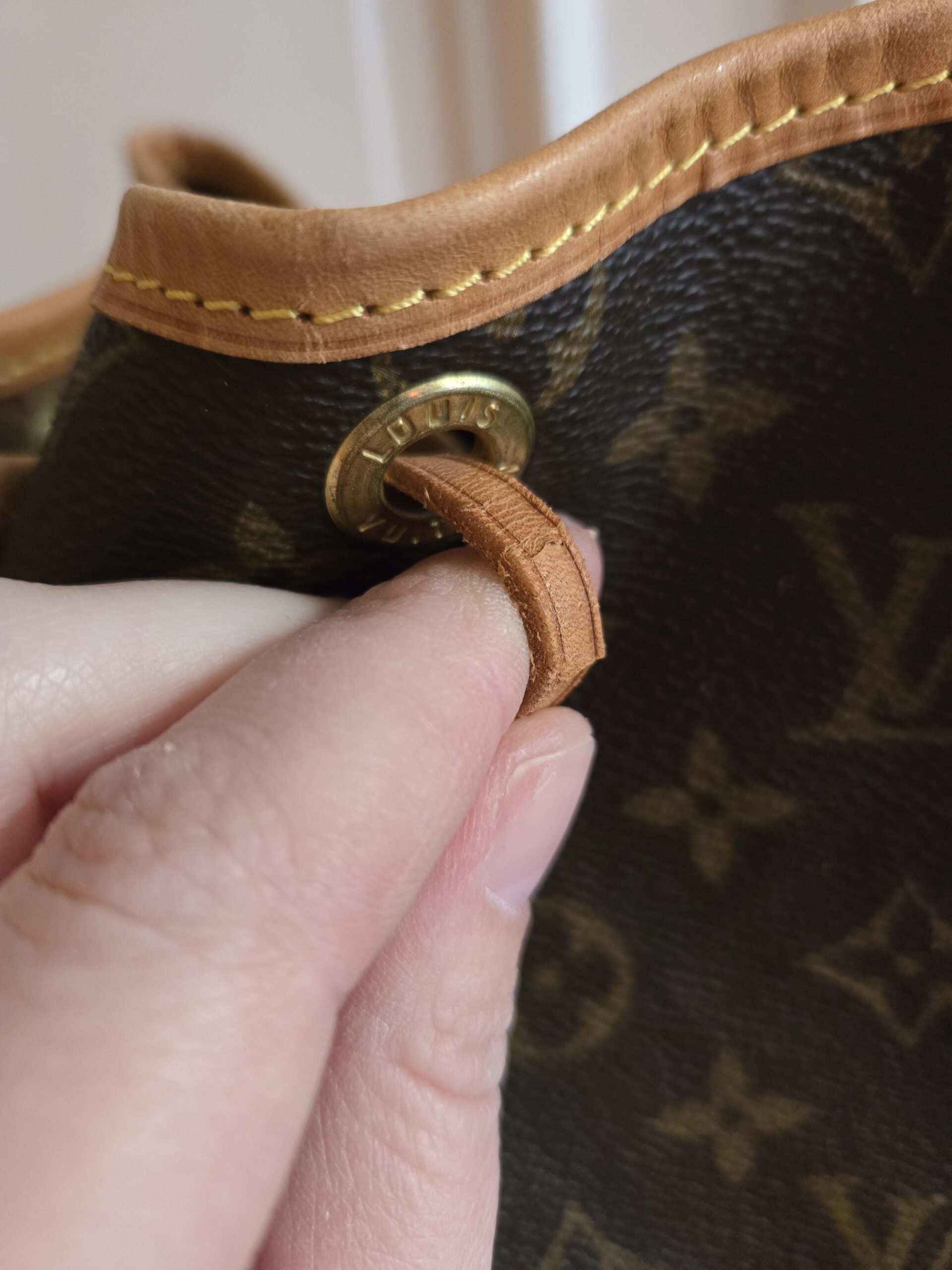 Die Tasche befindet sich in einem wunderschönen Vintage Zustand. Die Lederelemente sind alle sehr gut erhalten, teilweise weisen sie einige, dem Alter entsprechenden Gebrauchsspuren auf. Das Monogram Canvas ist super erhalten. Das Zugband weist geringe Gebrauchsspuren auf, ist stellenweise etwas steif und rissig. Das Innere der Tasche ist absolut ok.