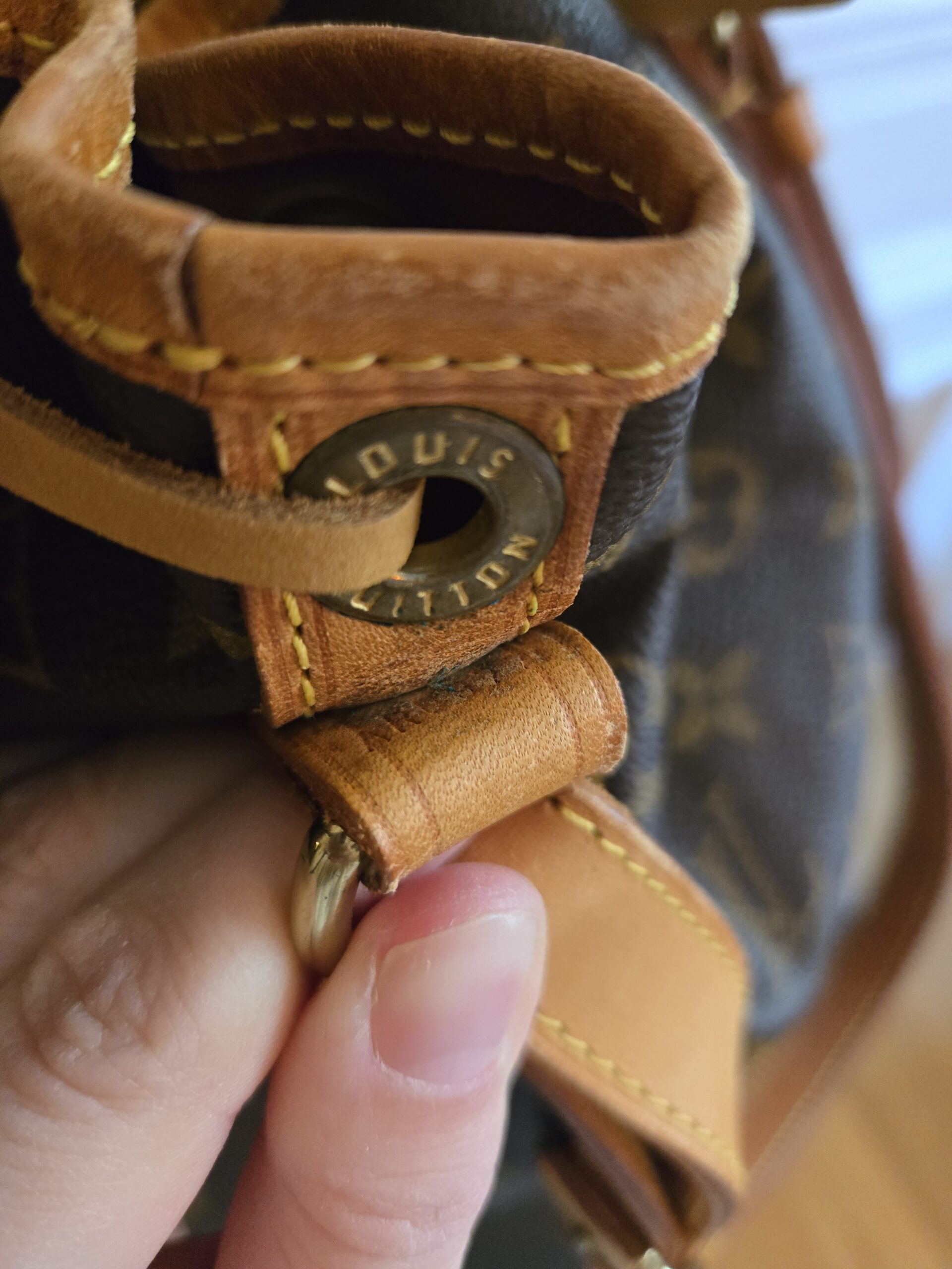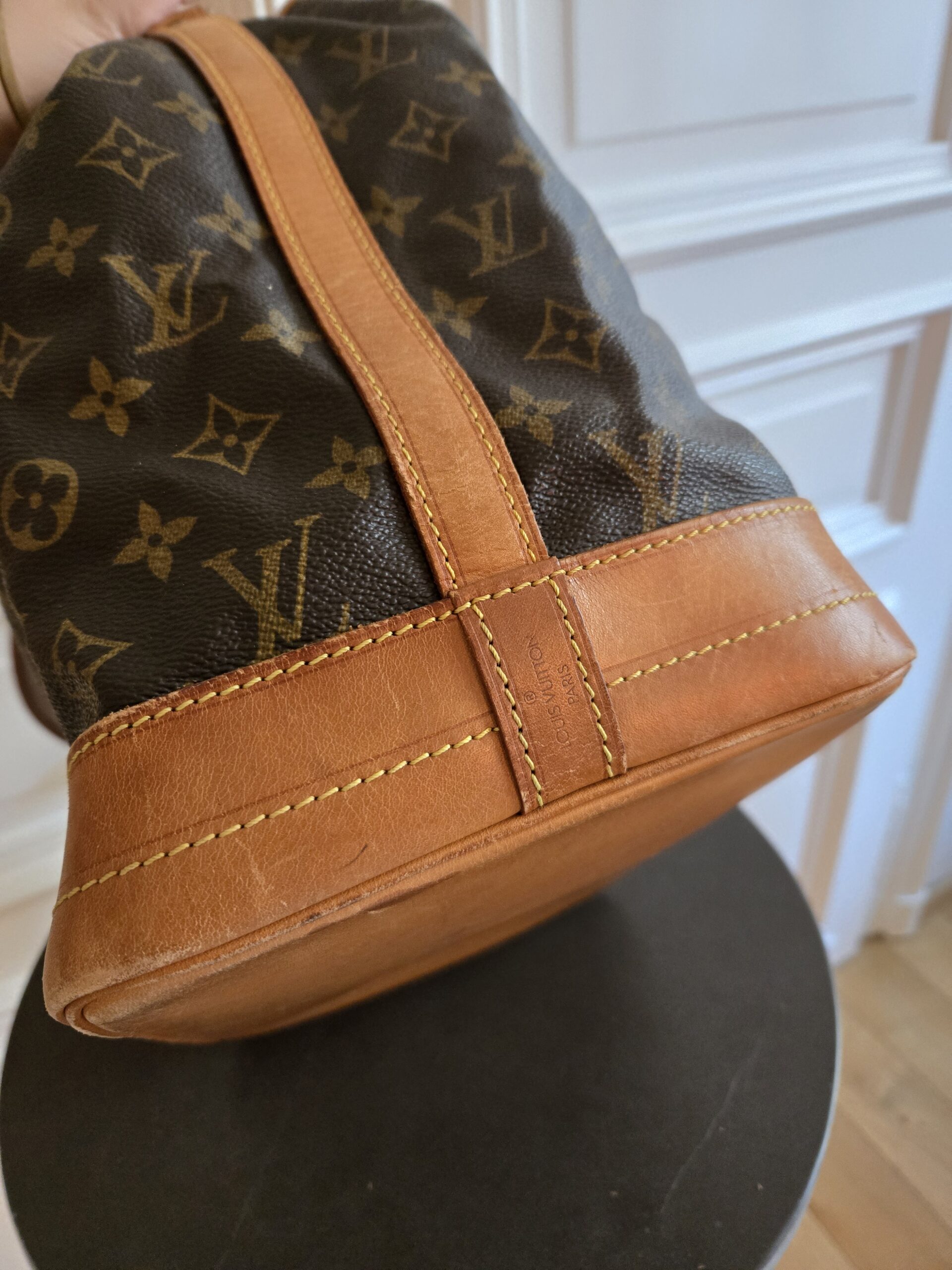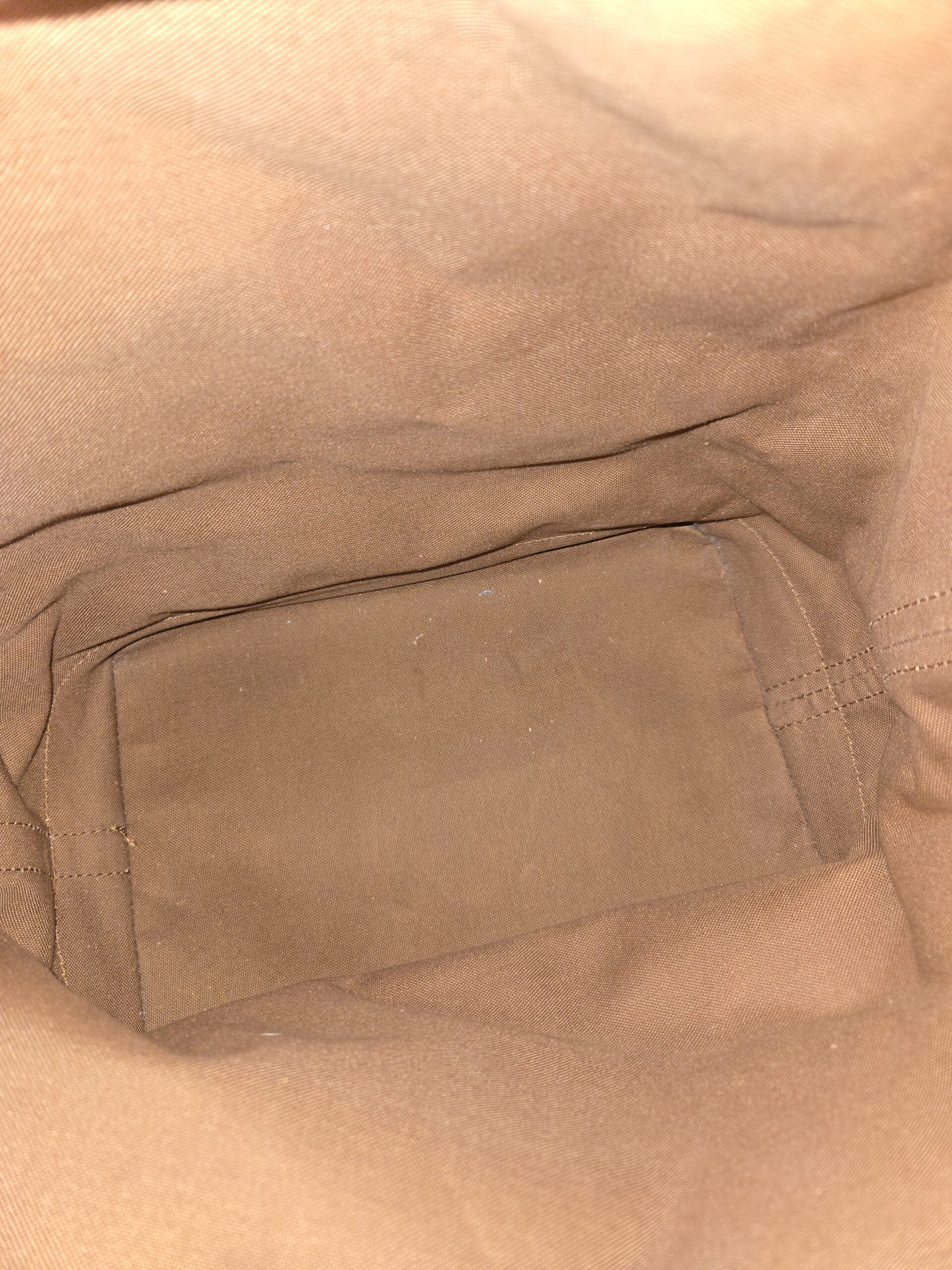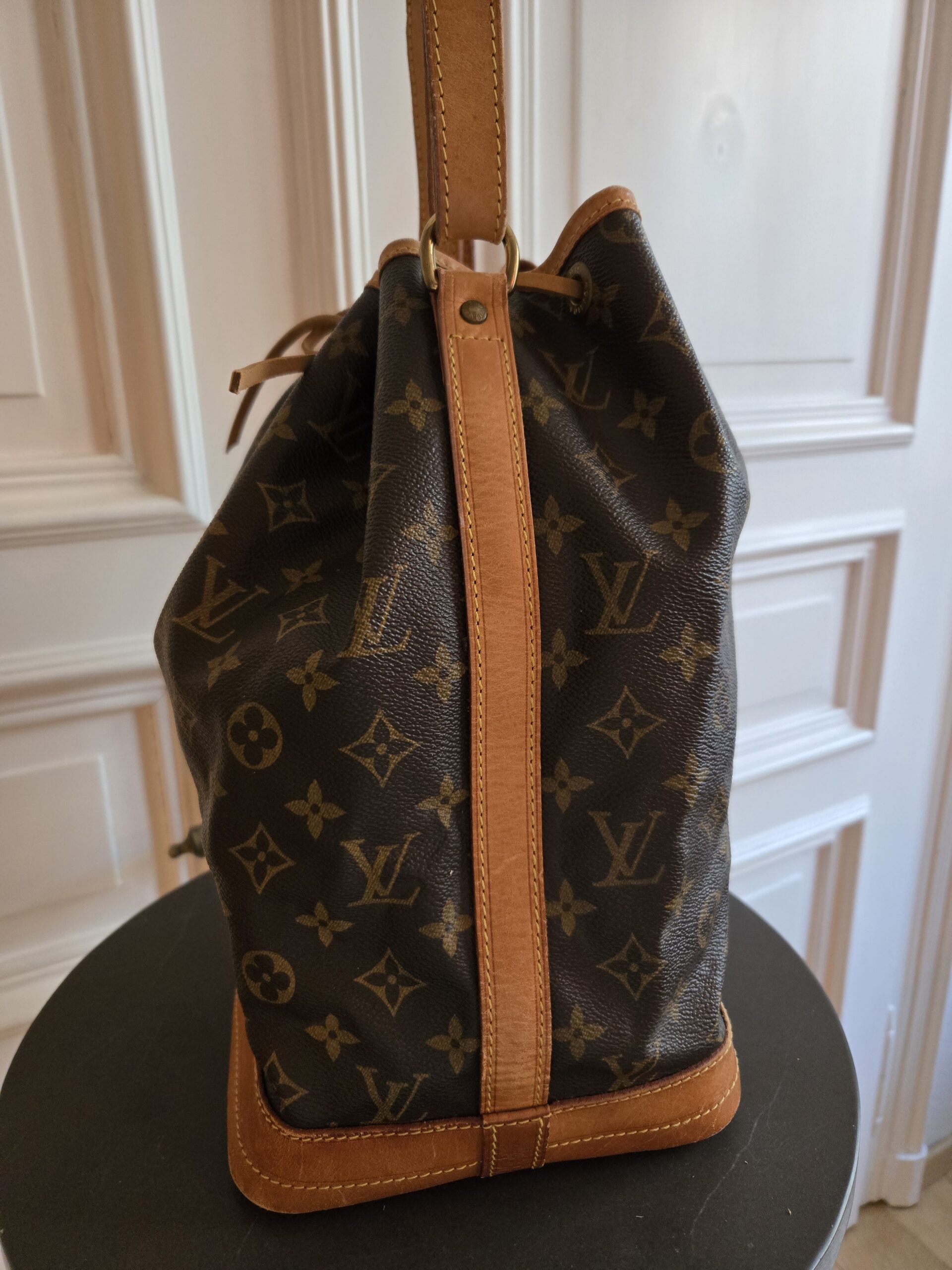 Die Tasche befindet sich in einem wunderschönen Vintage Zustand. Die Lederelemente sind alle sehr gut erhalten, teilweise weisen sie einige, dem Alter entsprechenden Gebrauchsspuren auf. Das Monogram Canvas ist super erhalten. Das Zugband weist geringe Gebrauchsspuren auf. Das Innere der Tasche ist absolut in Ordnung. Von dem D Ring im Inneren ist leider das Lederbändchen gerissen. Kann aber sicherlich für kleines Geld beim Sattler repariert werden.