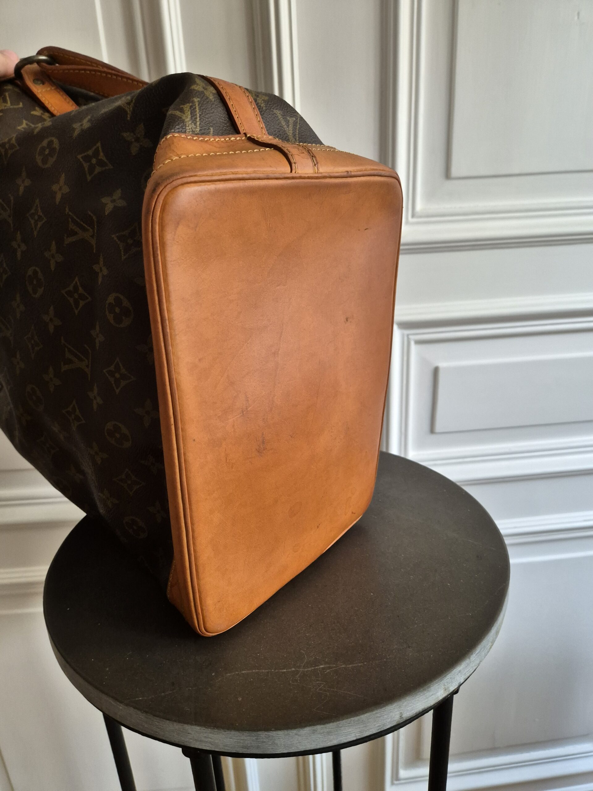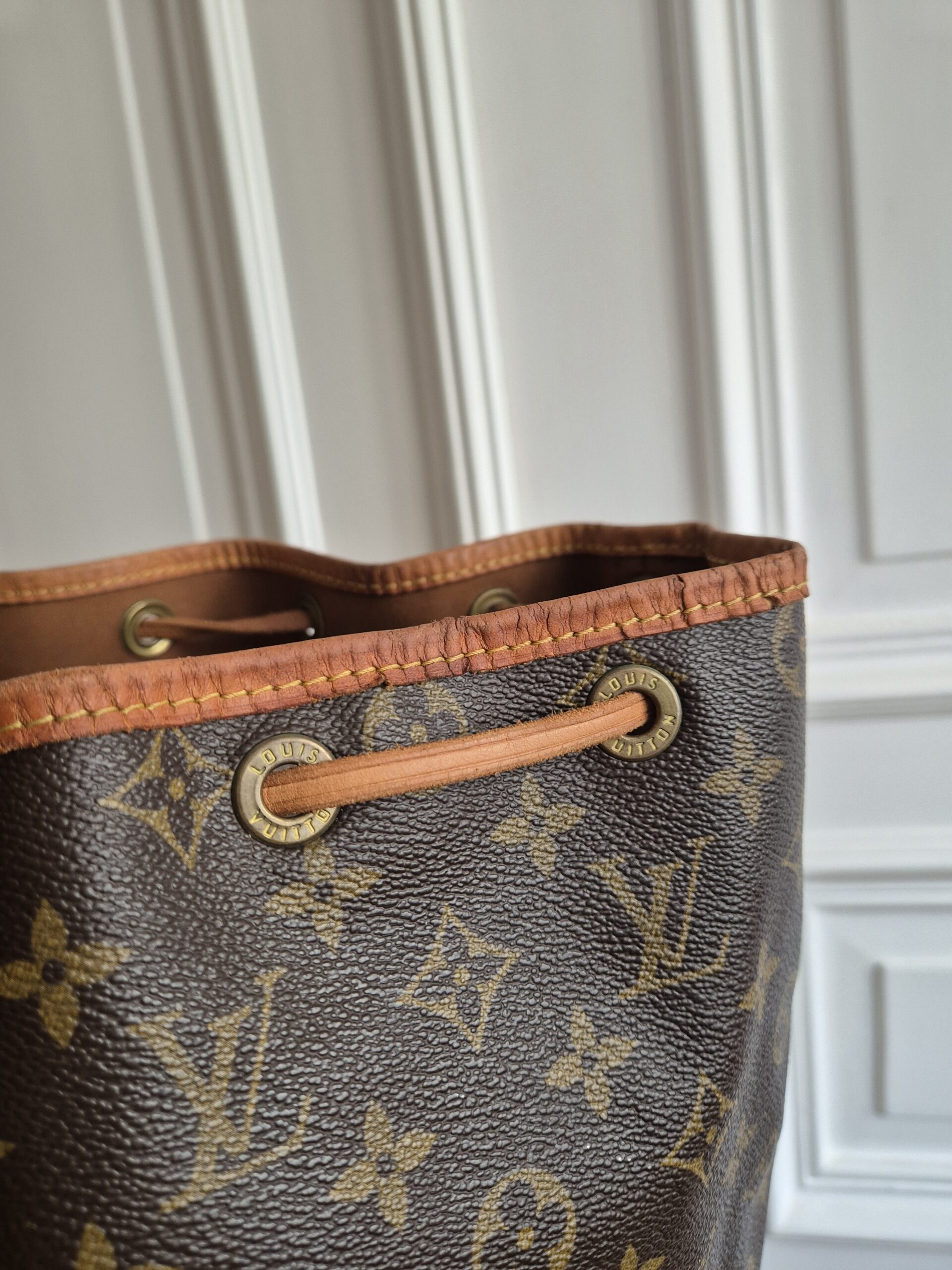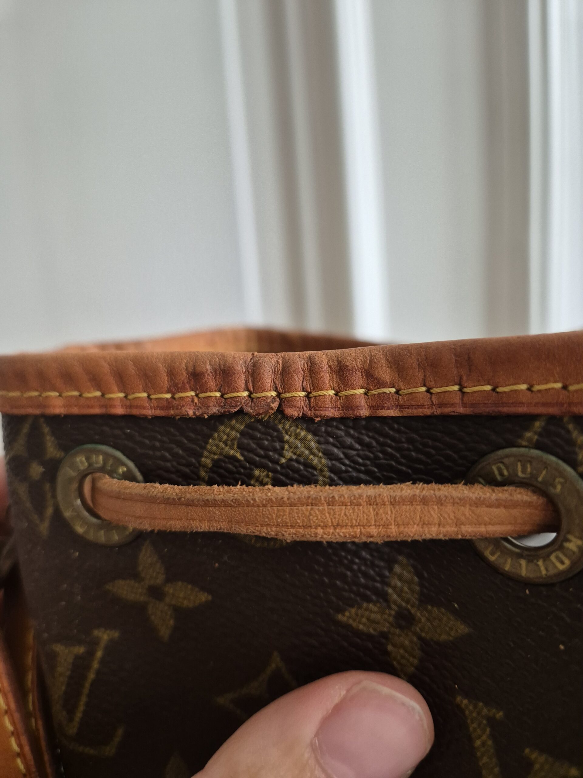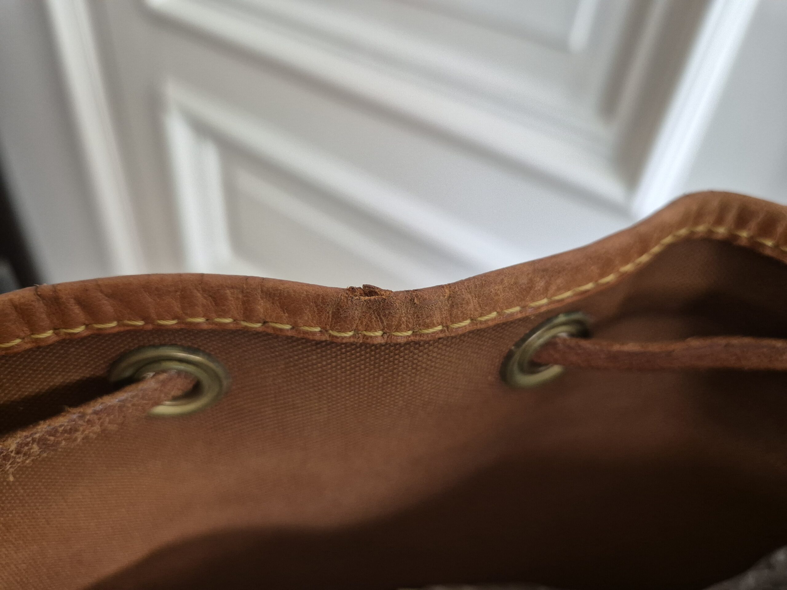 Die Tasche befindet sich in einem wunderschönen Vintage Zustand. Die Lederelemente sind alle sehr schön erhalten, der obere Lederrand ist bis auf ein paar kleinere Gebrauchsspuren super erhalten, das Zugband weist nur leichte Gebrauchsspuren auf. Das Monogram Canvas ist ebenfalls sehr gut erhalten. Alle Ecken sowie der Boden sind gut erhalten. Die Tasche hat altersgerechte Gebrauchsspuren in Form von leichten Wasserflecken auf dem Vachettaleder.