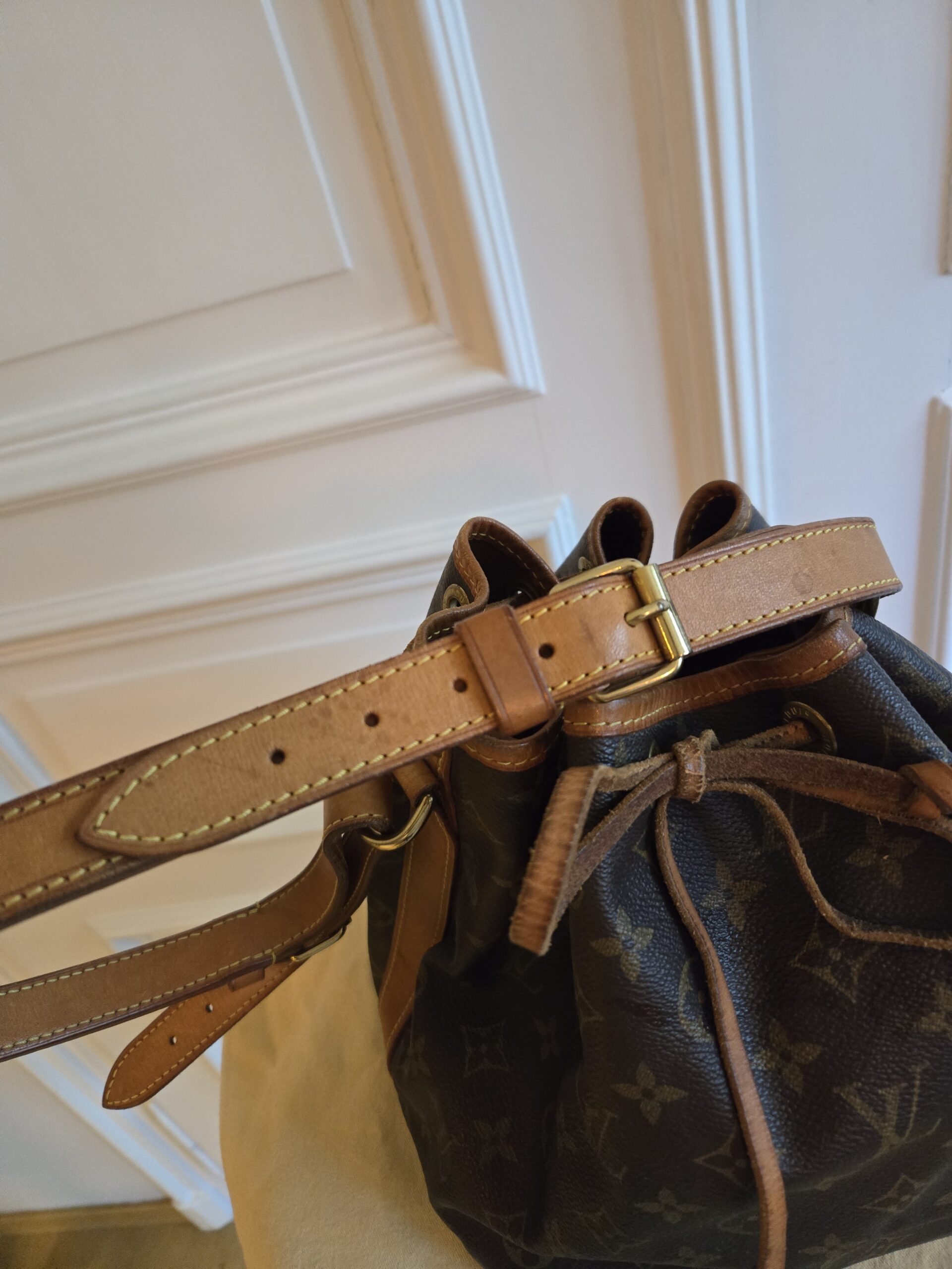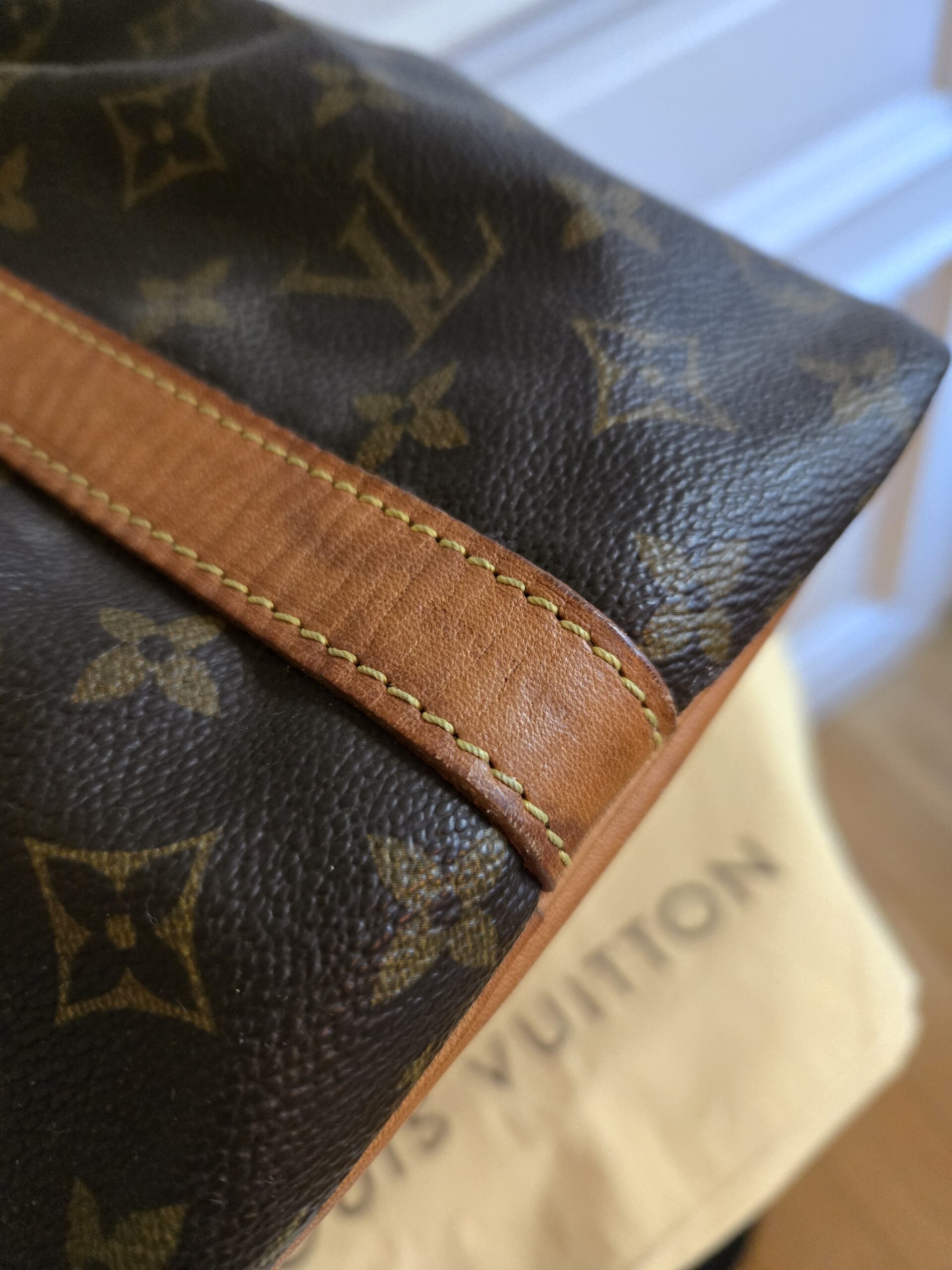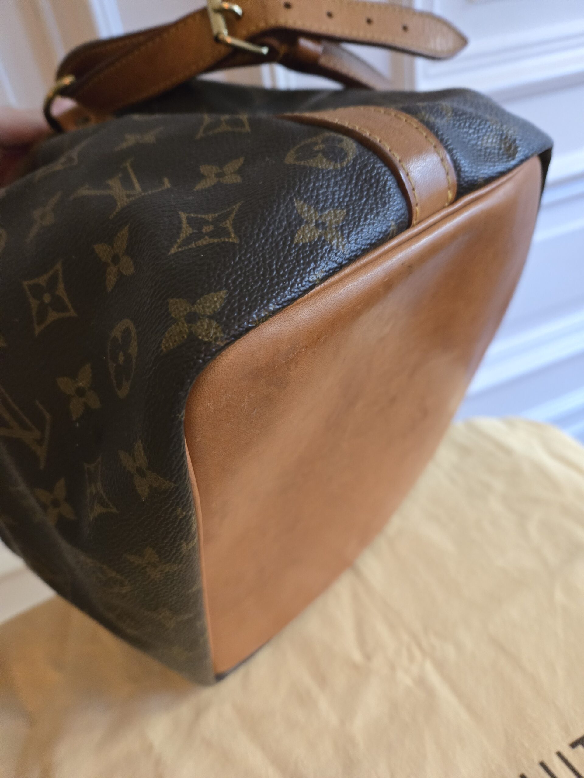 Die Tasche befindet sich in einem wunderschönen Vintage Zustand. Die Lederelemente sind alle sehr gut erhalten, teilweise weisen sie einige, dem Alter entsprechenden Gebrauchsspuren auf. Das Monogram Canvas ist super erhalten. Das Zugband weist geringe Gebrauchsspuren auf. Das Innere der Tasche ist absolut in Ordnung.